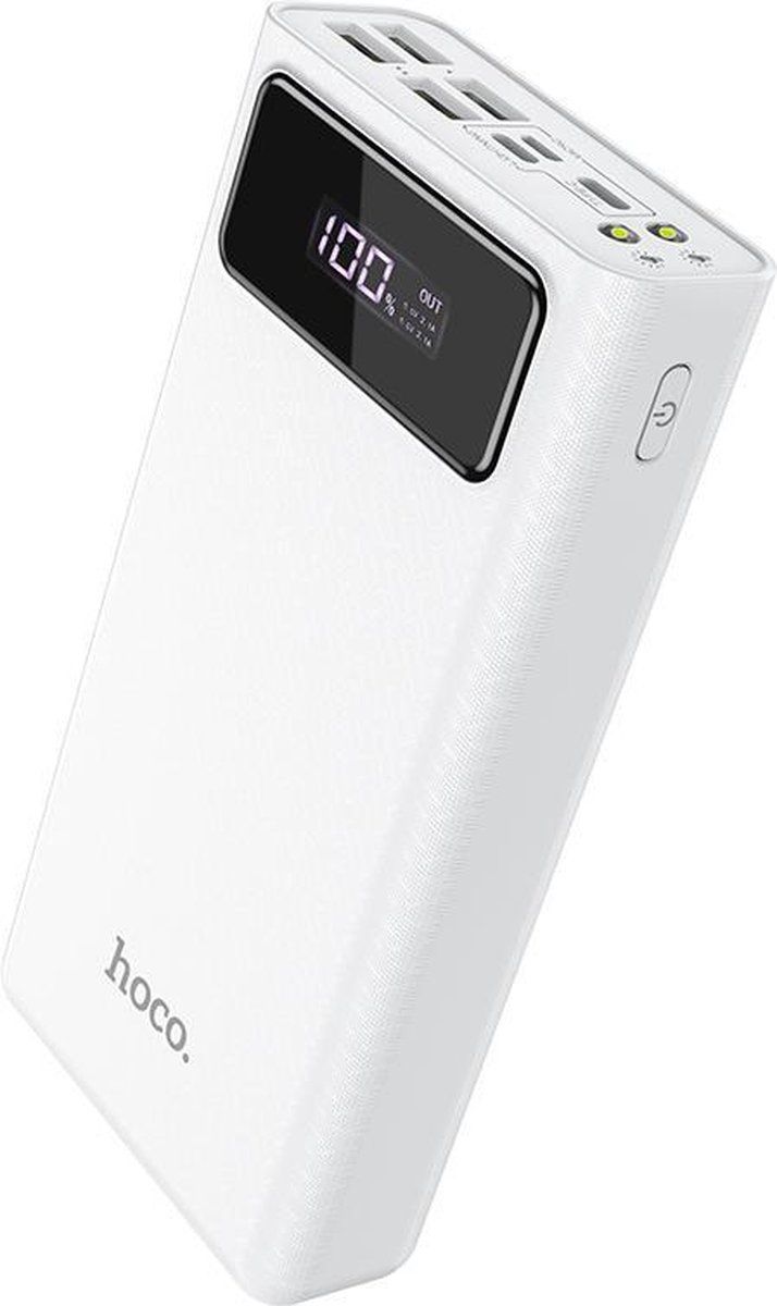 Hoco Powerbank 30.000 mAh - Ultra Capaciteit - Fast Charge Snellader - 4x USB-A Output - Met Zaklamp & LED Display - Wit (meer...)
